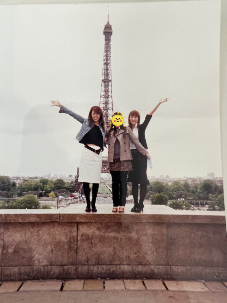 iPhoneを置いて一瞬撮影。20年以上前もパリのエッフェル塔で菅原さんとたしか、このポーズした気がします。)