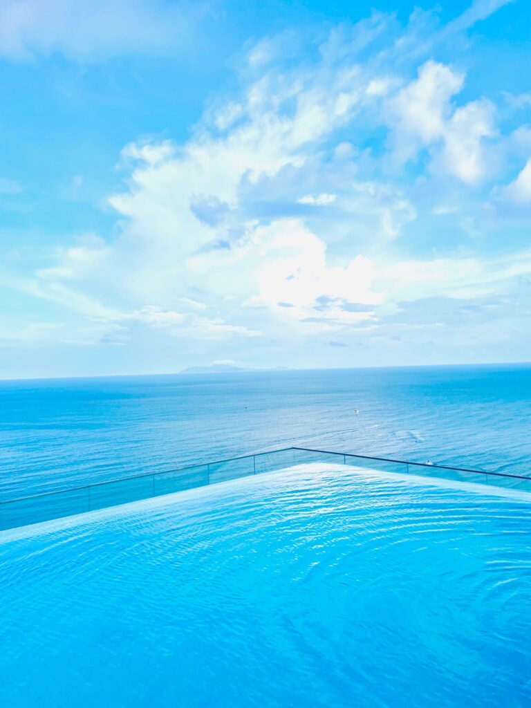 (ホテルのプール!海と合わさって見えて素敵!タクシーの出来事を洗い流してくれました。)