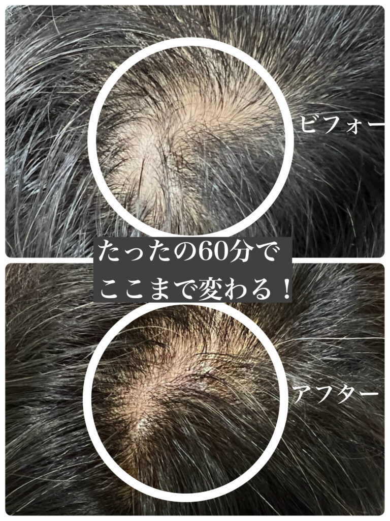 たったの60分でここまで、薄毛が目立たなくなるのが、スカルプカラー!
