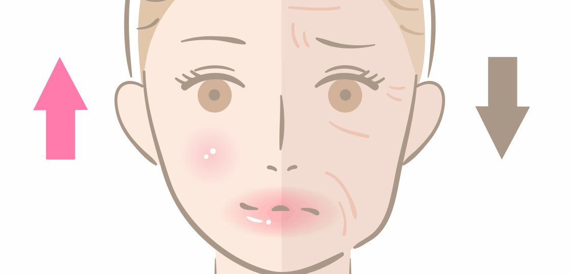 試しに、鏡を見ながらご自分のほうれい線付近の肌を一センチ上に引っ張ってみてください。