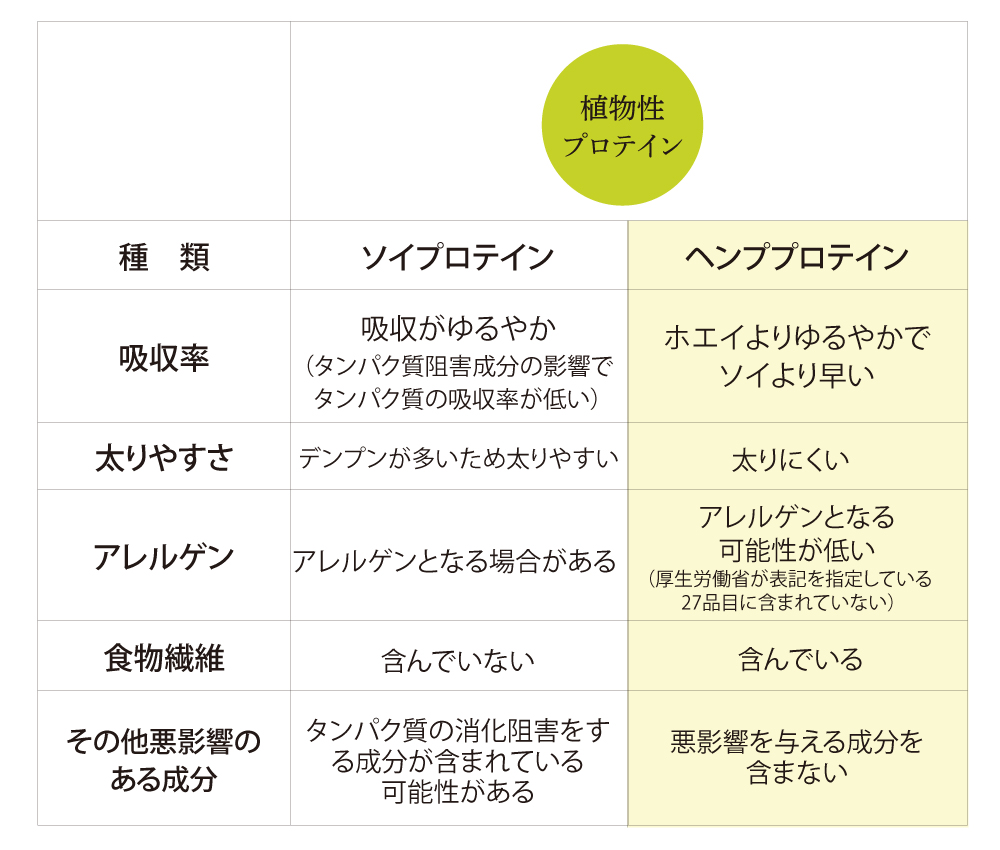 ヘンププロテインは他のプロテインと比較して、吸収性も良いですし、何より太らない!