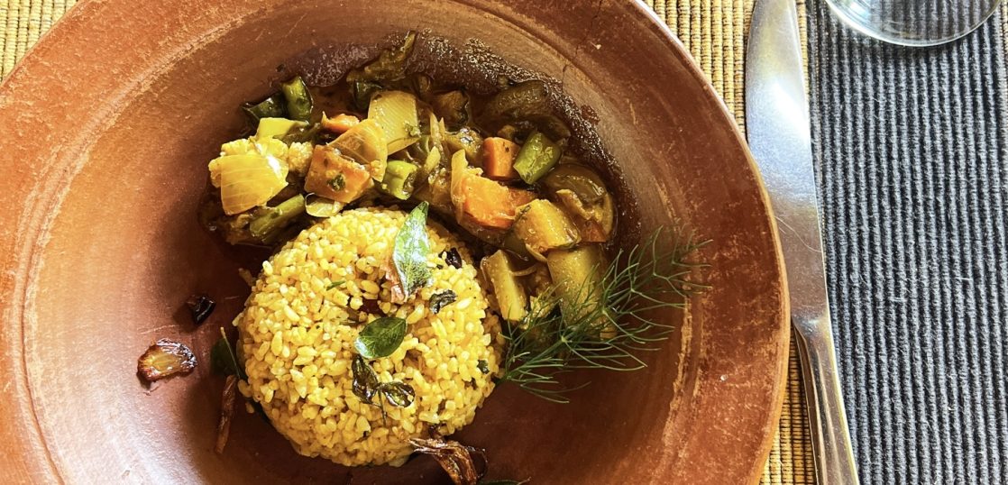 施設はアーユルヴェーダ専門施設のため、薄味で完全ベジタリアン!
