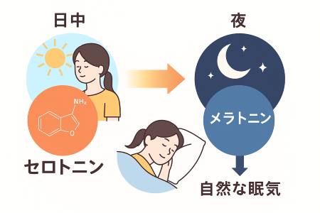 セロトニンを増やすことで、眠りの質を高めるメラトニンの質も変わります。